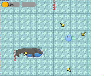 Votre bulle rétrécit lorsque vous perdez des points de vie et grossit lorsque vous en regagnez. Mais prenez garde à ne pas trop grandir : un excès d’air pourrait vous faire éclater comme un ballon.